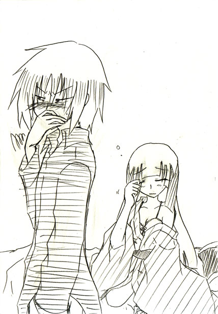 未だに眠気が取れないまま、彼女はぼんやりとした調子で彼に深々と礼をする。乱れた着衣については多分まだ気付いていないのだろう。着々と大人に近づいていっている彼女の肢体に対し、目のやり場に困った龍宮は依然彼女を視界の端にいれないように顔を背けながら、己の口元と鼻を、自分の右手で塞いだ。