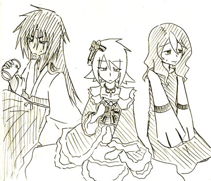 ……というわけでお姫様っぽい衣装で(目薬使用で)涙ぐんでるアックアと、袴姿で酒の缶携えたガッビアと、(ポンチョを)脱いだフィアンマをば