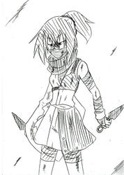 私は彼等を護るように一本のクナイを異形の……人間の眉間と思しき場所へ投げつけた。